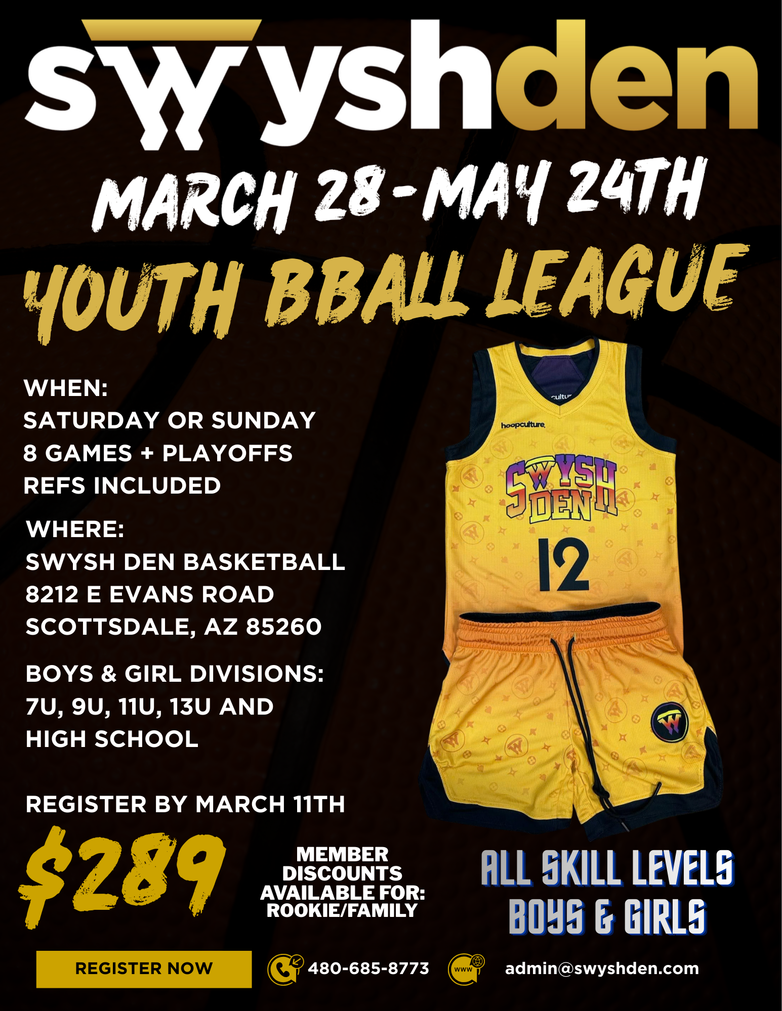 - Games are held weekly at Swysh Den Basketball: