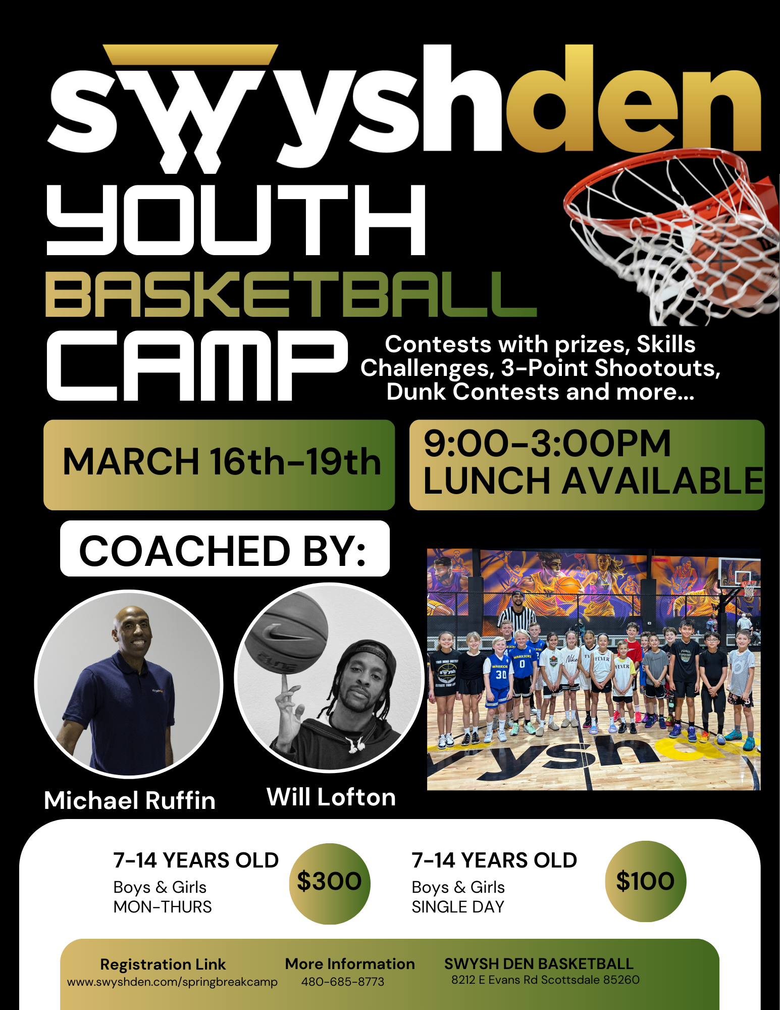 SPRING BREAK 2026 BASKETBALL CAMP AT SWYSH DEN IN SCOTTSDALE & PHX