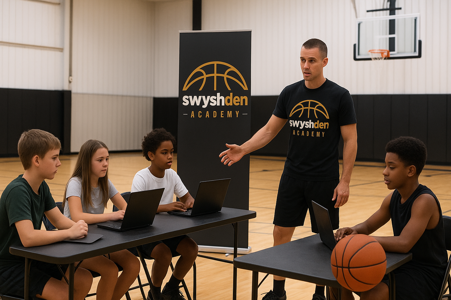 A structured, supervised workspace for high school athletes completing their online, NCAA-approved coursework. Students stay on track academically while training daily at Swysh Den with skill work, shooting sessions, performance training, and leadership development built into their schedule. The perfect blend of academic flexibility and elite athletic growth.